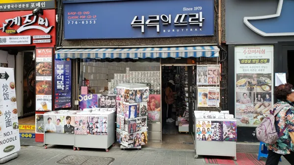 - Looking for a signed copy of a CD of the latest K-Pop star? Take a look in here. Along with CDs, posters, and novelties, it's right on the edge of the popular Myeong-dong shopping district.