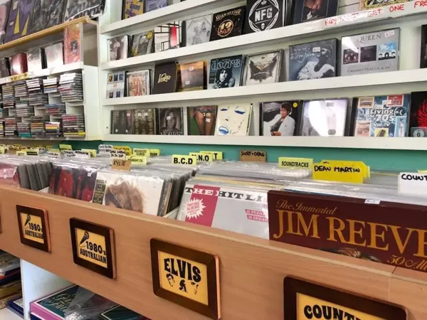 Permanent Stall at the Weekend Carrara Markets, a Gold Coast Institution. Selling a wide range of CDs, Vinyl, Cassettes, DVDs