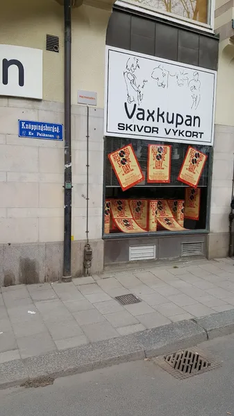 - Vaxkupan was founded 1988 by Janne and Christer as a record shop in the basement of the local market hall. We opened the shop with half of our private record collections. Nothing else!Since we both loved black and white photography, we began to import postcards from Fotofolio in New York to get the masterpieces. By then you couldn´t get these cards in Sweden with the exception of the Modern Museum in Stockholm.Our collections expanded. More records. More cards. Local bands celebrated their first records with small concerts in our shop. Including This Perfect Day an unknown band in these days. Maybe a little surprise for those who went to the market hall to buy fish or vegetables...Åke Bjurhamn, a local artist, had an exhibition 1989 where he painted womens voices like Marianne Faithfull, Tracy Chapman etc. The local paper used the headline "New York? No, Norrkoeping!"...In 1993 we decided to move to the main street in town. Nervous days! Shopwindows! 155 squaremeters!In 1995 we got the agency for Fotofolio. A new activity started. Distribution in the Nordic countries of postcards, posters, t-shirts. Later also refrigerator magnets, clocks, key rings, badges etc. Mainly museums and book stores but also a lot of odd shops.Fotofolio was followed by other agencies. Now we stock 500.000 postcards. The world´s most famous photography. And a lot of very odd and interesting stuff. Our latest addition is Betty Page on video...So the shop sells music and images. CDs and postcards. Lots of used CDs, LPs and singles. The very best hammocks, handmade by Maya indians in Mexico. Quality film on video. Lots of refrigerator magnets and much, much else...The music! We are still curious of the new in independent pop, rock, blues, country, jazz etc. We have a great selection of soul music and northern soul. And a huge one on 60s and 70s. Totally 12.000 titles of CDs in stock.